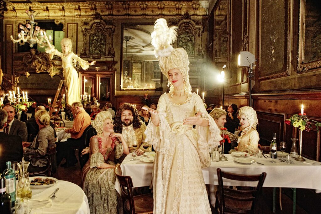 Aus zahllosen historischen Quellen schöpfend hat die Autorin einen vergnüglichen Dreiakter geschaffen, der als Operndinner mitten im Publikum zelebriert wird. Alle Gäste sind Figuren aus verschiedenen Opern und zum festlichen Dinner angereist. Da kann es schon einmal sein, dass ein Gast als Doktor aus der Oper „La Traviata“ seinem Tischnachbarn in der Rolle des Komturs aus der Oper „Don Giovanni“ Luft zufächelt – oder als Hofkapellmeister mit der ganzen Gesellschaft aus Nabucco den Gefangenenchor zum Besten gibt.